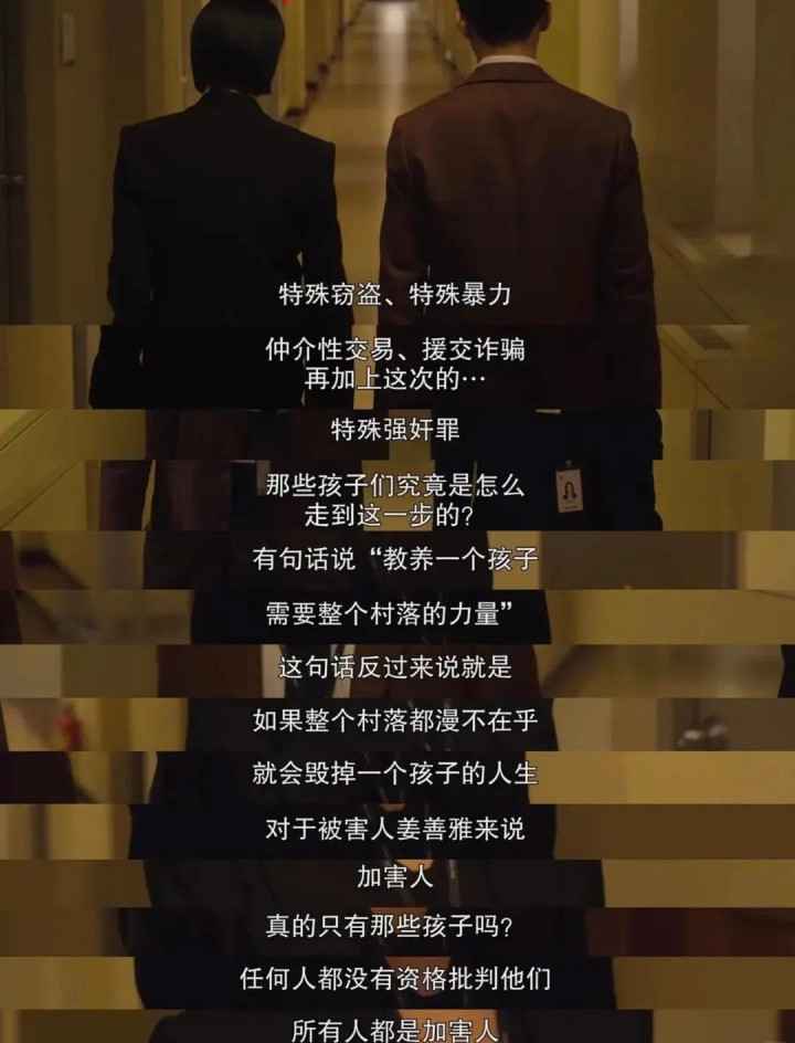 当然,《正义女神》并不完美,在人物逻辑、剧情深度等方面仍有明显短板,还有刻意煽情,剧情发展过于理想化,有部分配角沦为工具人等问题,缺乏人性的深度挖掘,所以少年犯形象就变成了“纯粹恶魔”和“被动受害者”的极限二选一。
